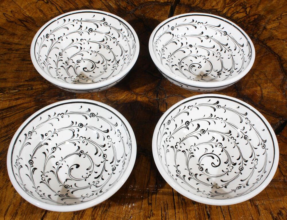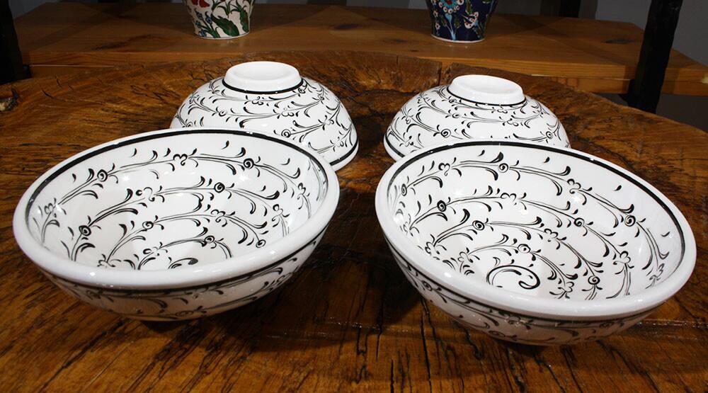 • 4 pièces de bols en poterie d'Iznik entièrement fabriqués à la main