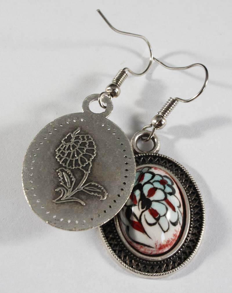 Mavi Zemine Kırmızı Lale Çini Küpe