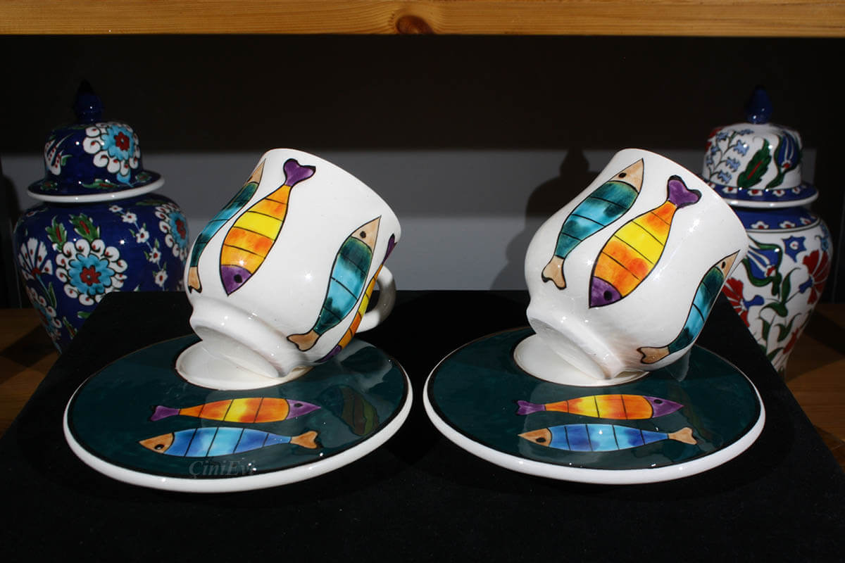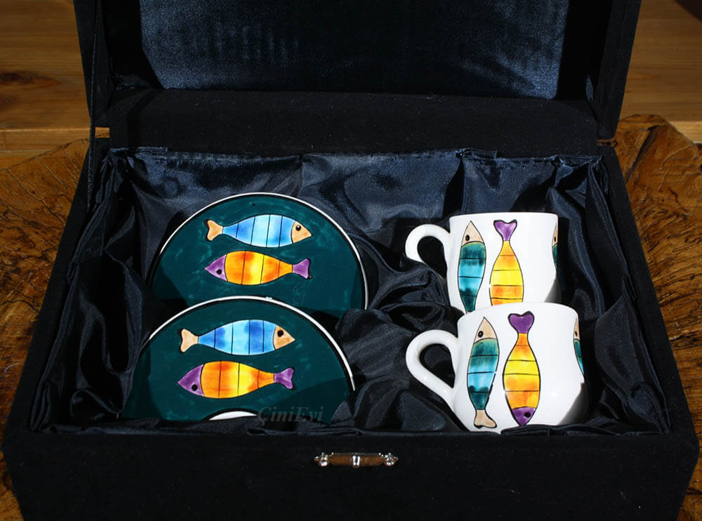 2 adet fincan takımı balık desenli mükemmel bir takım.