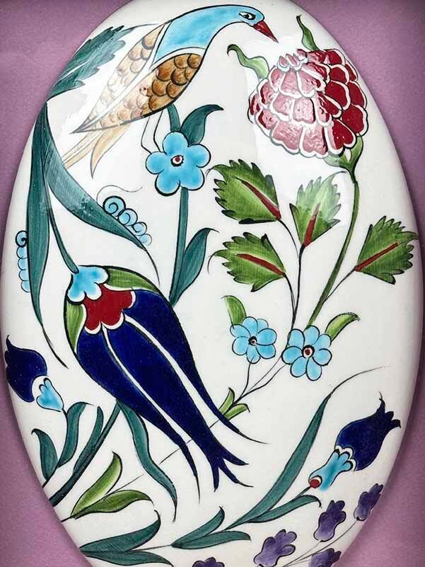 İznik çini sanatında kuş figürü; özgürlüğü, hayırlı haberi ve ruhsal ferahlığı simgelerken, çiçek motifleri bereketi, doğanın sürekliliğini ve yaşam sevincini temsil eder. Bu iki motifin bir arada kullanılması, yeni bir başlangıç ve huzurlu bir yaşam temennisini güçlü bir şekilde ifade eder.