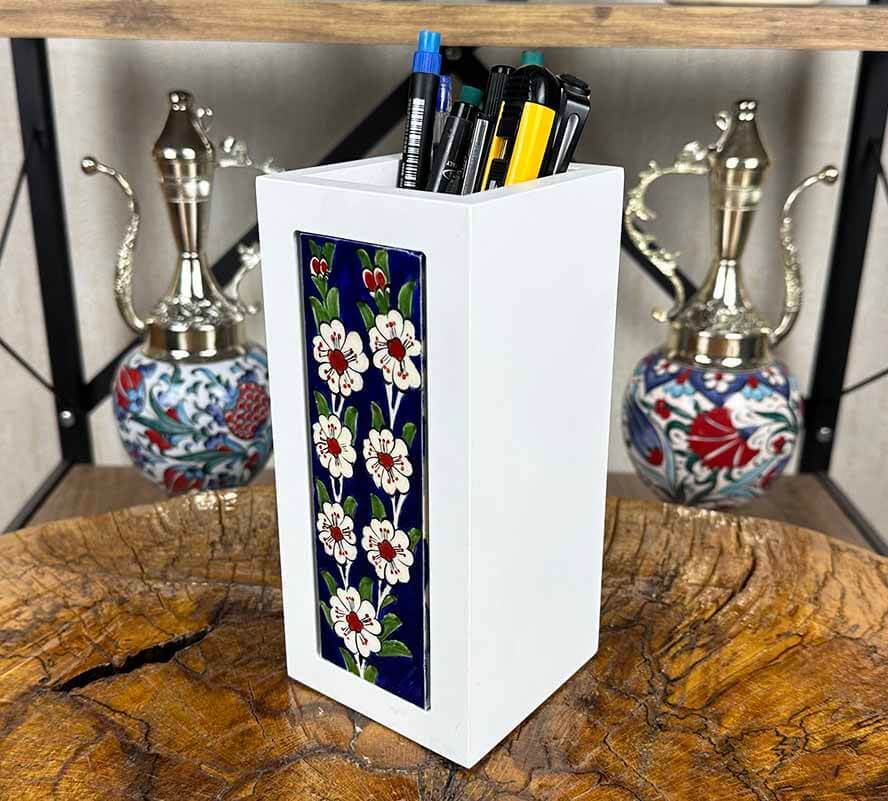 • Ahşap gövde üzerine çini taş uygulamalı dekoratif kalemlik