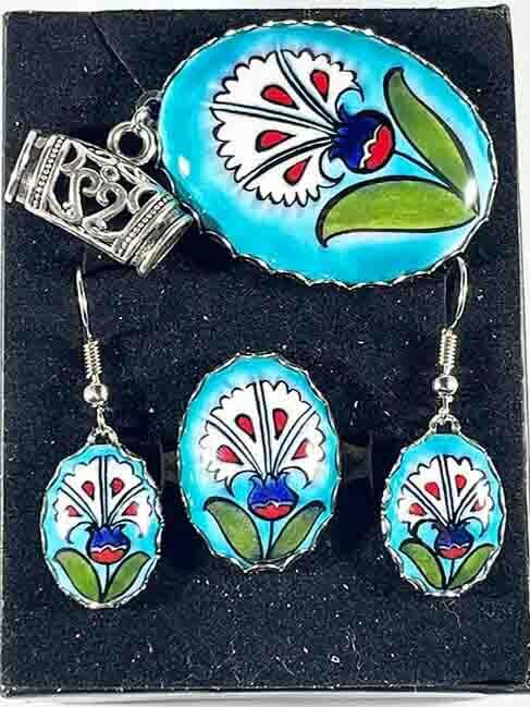 • Bague (réglable), boucle d'oreille, bracelet et pendentif