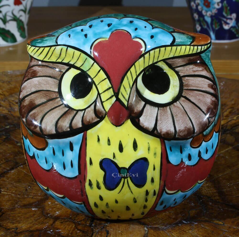 İznik ÇiniEvi Özel tasarımı bilge baykuş desenli İznik çini biblo.