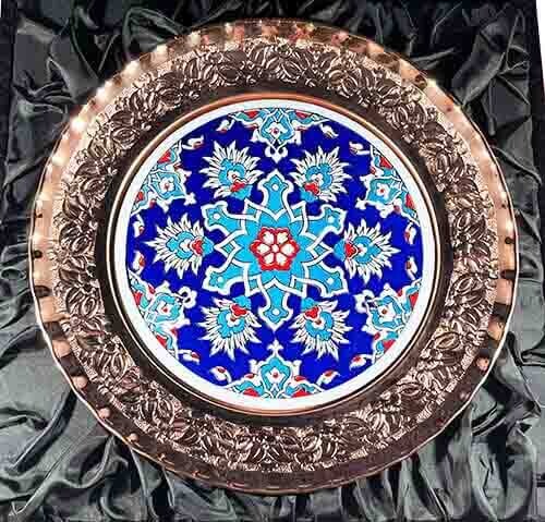 Blue Floor Tile Patterned 25cm Bronze Plate