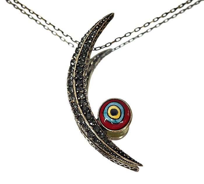 Pierre de carrelage : 1 cm (0,39 pouce), demi-lune en bronze : 6 cm (2,36 pouces), longueur de la chaîne : 52 cm