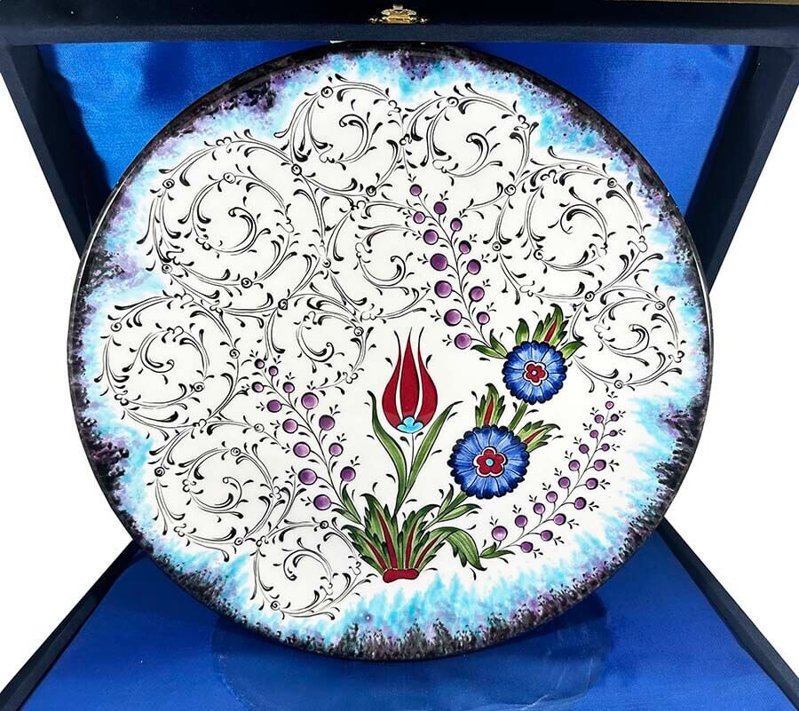 Haliç ve Çiçek Bahçesi Desenli İznik Çini Tabak,