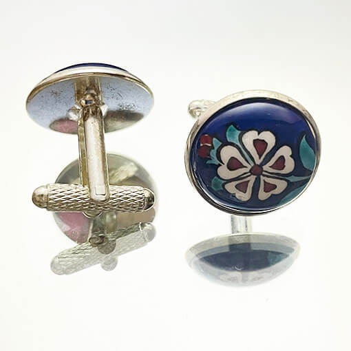 Gümüş kaplama tamamen el işi İznik çini kol düğmeleri gömleğinizde muhteşem duracak.
