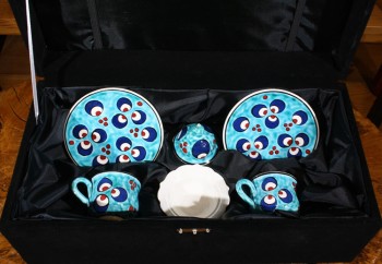 Das Mavi Lale & Haliç Muster İznik Çini Kaffeepräsentationsset – Firmenpräsent