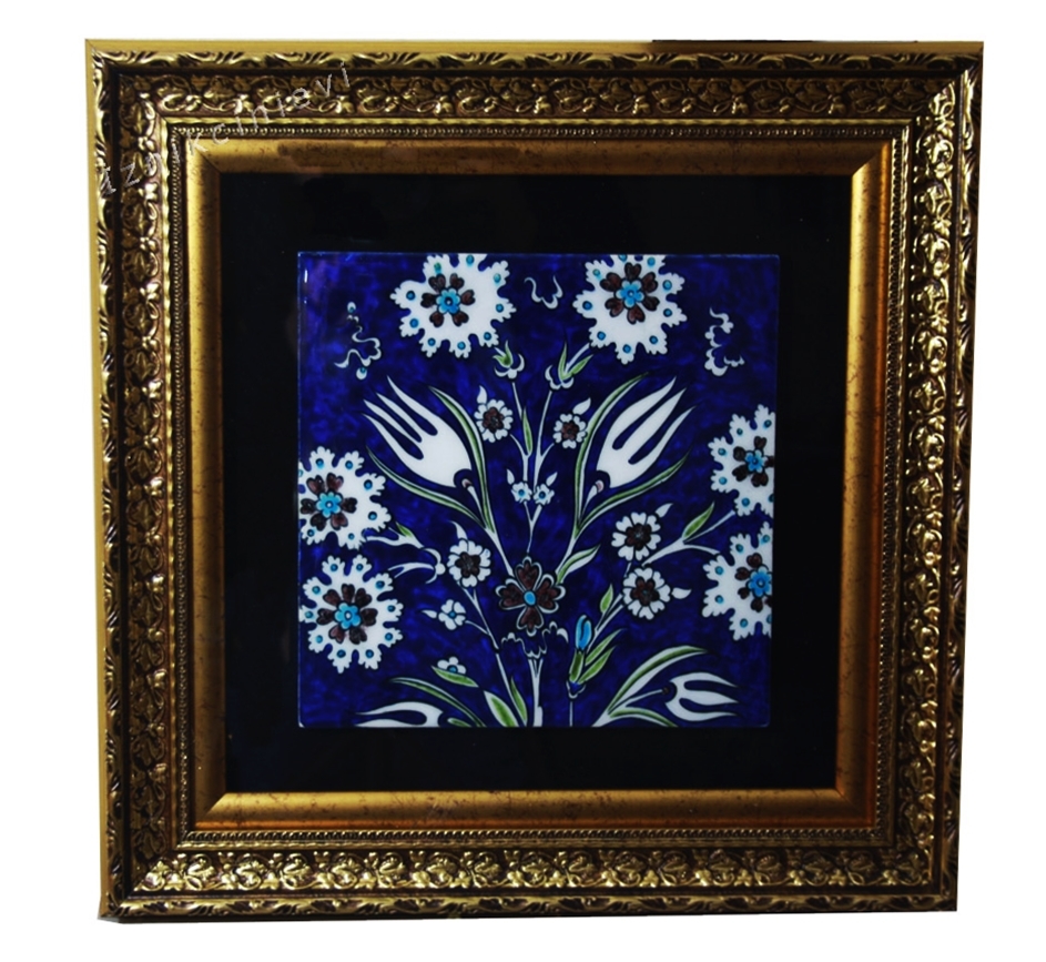 Plaquette de Remerciement avec Motif Œillet – Céramique d'Iznik Artisanale dans un Cadre Passe-Partout