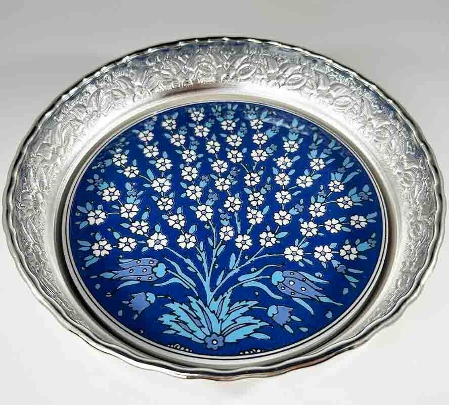 Ce sucrier en métal argenté, orné du motif symbolique de l’arbre de vie inspiré des céramiques d’Iznik, est un choix prestigieux pour les cadeaux officiels destinés aux membres de l’État ou à des invités de haut rang. Présenté dans un coffret en bois noble recouvert de velours, il allie élégance, signification culturelle et excellence artisanale.