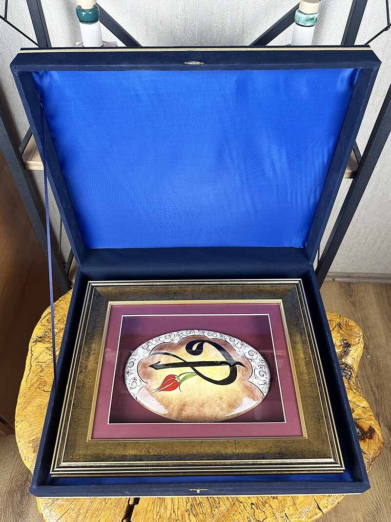 Bu özel İznik çinisi, Elif ve Vav harflerinin dengeli anlatımıyla; resmî protokolde sunulabilecek, kültürel kimliği ve manevi anlamı olan saygın bir sanat hediyesi olarak tasarlanmıştır.