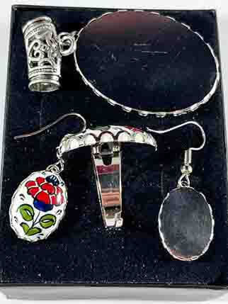 • Bague (réglable), boucle d'oreille, bracelet et pendentif