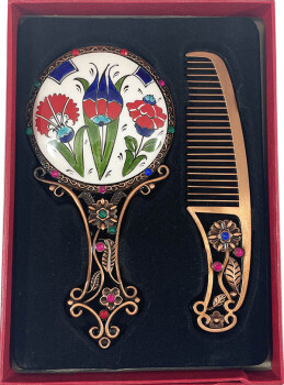 Frühlings- und Tulpenmotiv-Iznik-Keramik-Spiegel-Set