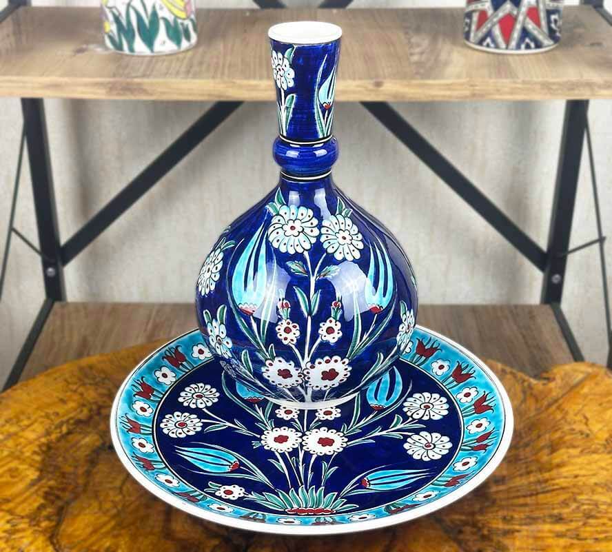 Gece Bahçesi – İznik Çini Vazo Tabak Seti