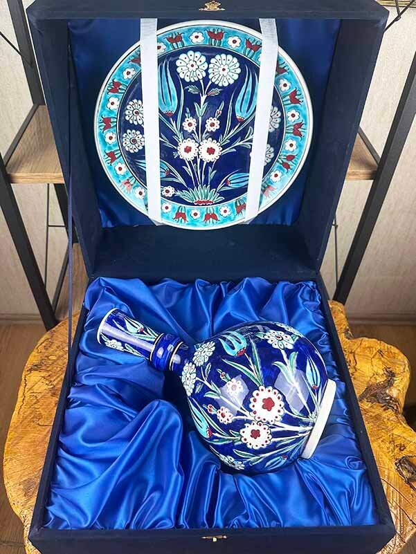 • Tamamen el işi İznik çini vazo ve tabak seti