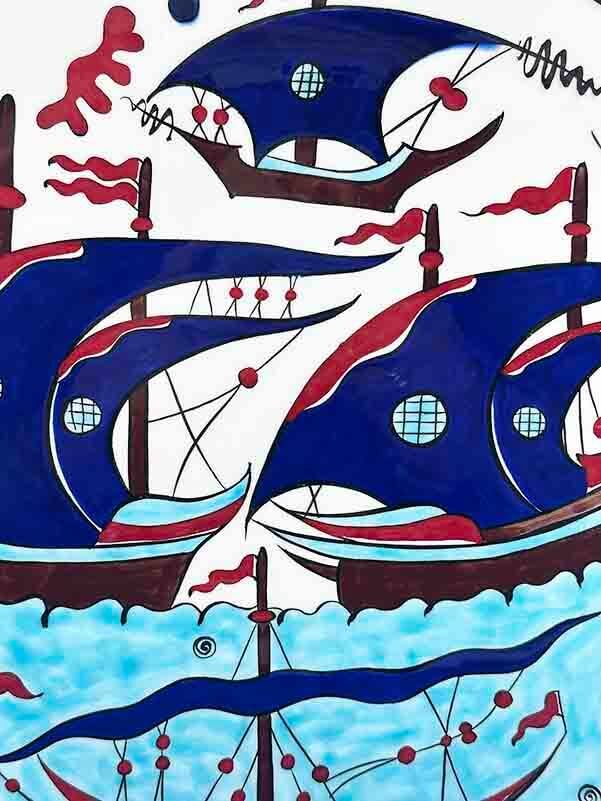 Osmanlı deniz geleneğinin ihtişamını yansıtan bu özel eser, “Osmanlı Yelkenlileri” temasıyla tarihî denizcilik kültürünü İznik çinisinin klasik çizgileriyle bir araya getiriyor.