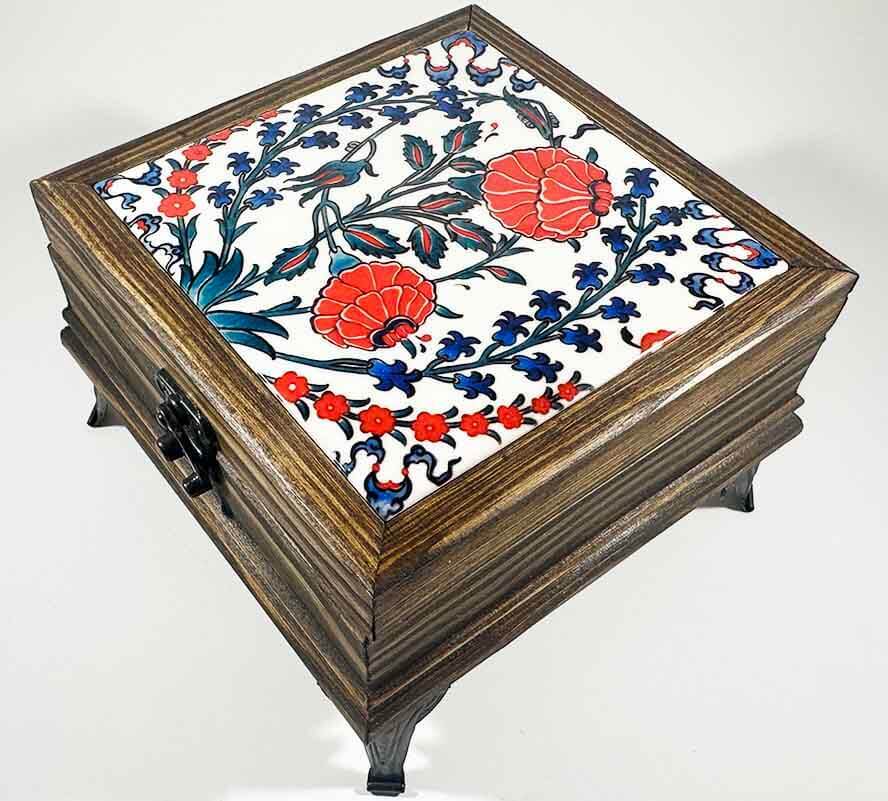 Die Bereketin Simgesi Nar Motifli Saklama Kutusu vereint tief verwurzelte Symbolik mit elegantem Design. Der Deckel ist mit einer keramisch bedruckten Fliese im Iznik-Stil verziert, auf der das Granatapfelmotiv detailreich dargestellt ist – ein kraftvolles Sinnbild für Wohlstand, Fruchtbarkeit und Glück. Diese kompakte Holzbox dient nicht nur zur Aufbewahrung Ihrer wertvollen Kleinigkeiten, sondern bringt auch einen Hauch traditioneller Kunst in Ihr Zuhause.