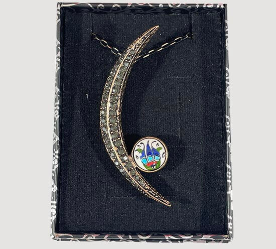 Lassen Sie mich wissen, wenn es eintrifftHalbmond-Iznik-Fliesen-Bronze-Halskette mit Anemonenmotiv
