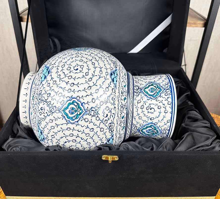 Hediye olarak tercih edildiğinde de son derece etkileyici bir seçimdir. Kurumsal hediye, yeni iş hediyesi, özel gün armağanı ya da koleksiyon değeri taşıyan bir sanat eseri arayanlar için kalıcı bir alternatif sunar. Haliç üslubunun tarihî inceliğini yansıtan bu şah vazo, geçici bir dekor ürünü değil; uzun yıllar sergilenebilecek, anlamı ve estetik değeri yüksek bir İznik çini eseridir.