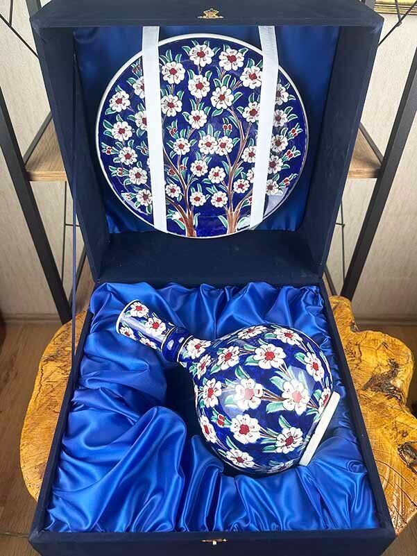 Hayat Ağacının Zarafeti – İznik Çini Vazo Tabak Seti