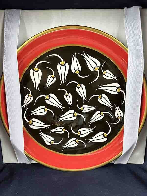 VIP Gift Black Background with Tulip Motif Vase and Plate Set.