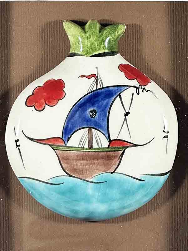 Kalyon (tarihî yelkenli gemi) motifi, İznik çini geleneğinin özgün renkleriyle işlenmiştir.