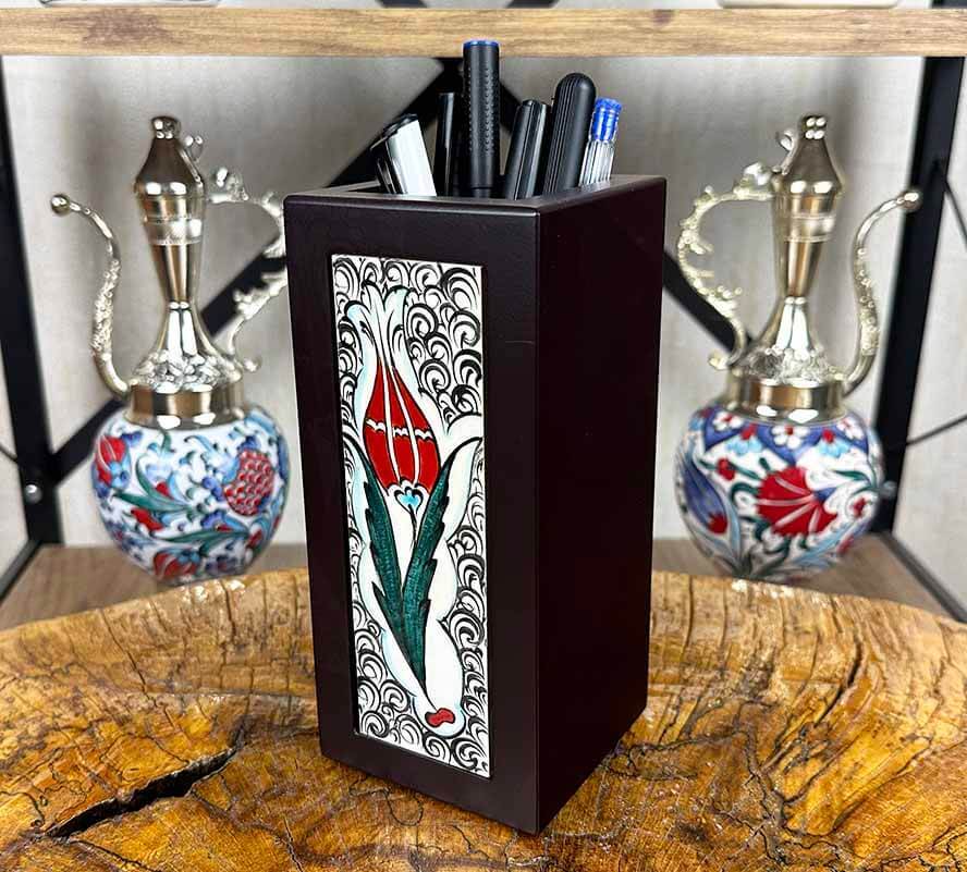 Kırmızı Lale – İznik Çinili Ahşap Kalemlik