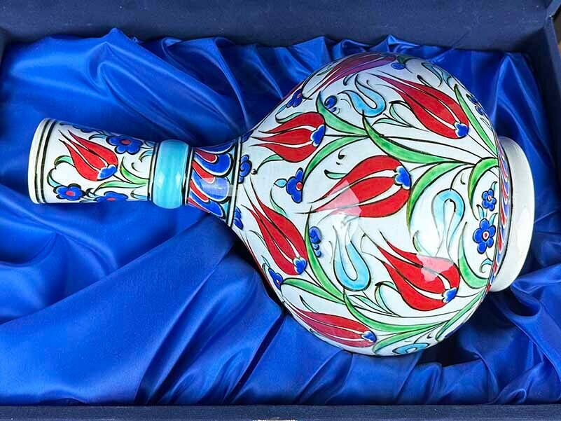 Bu özel parça, klasik Osmanlı lale estetiğini modern yaşam alanlarına taşıyan seçkin bir dekoratif objedir. Ev dekorasyonunda, ofiste, makam odasında, vitrinde ya da özel bir köşede sergilendiğinde mekâna kültürel bir derinlik ve estetik bir hareket kazandırır. Gösterişli olmasına rağmen sade bir uyum taşıması, ürünü hem geleneksel hem de modern dekorasyon anlayışına uygun hale getirir.