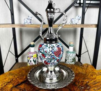 Découvrez l’élégance intemporelle de l’art céramique d’Iznik à travers cet ensemble artisanal composé d’un ibrik (pichet) et d’une assiette assortie, décorés de motifs symboliques de tulipe et de grenade. Chaque pièce est façonnée à la main, ce qui en fait un objet unique de patrimoine et de raffinement.