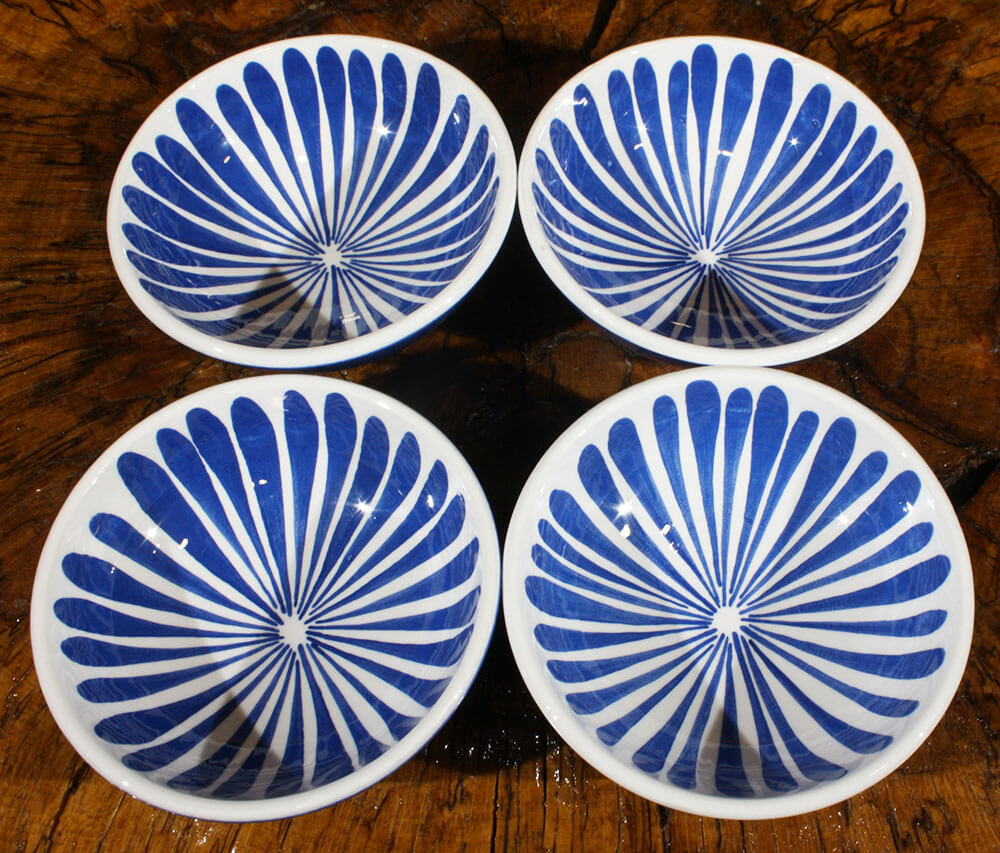 - Set includes 4 Iznik tile bowls with modern blue and white designs