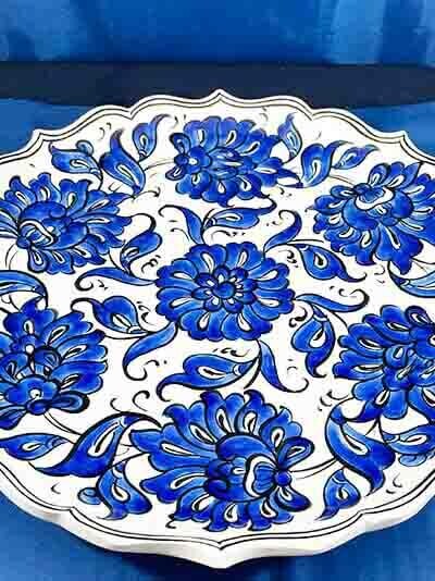 Mavi Beyaz Lotus Desenli İznik Çini Tabak,