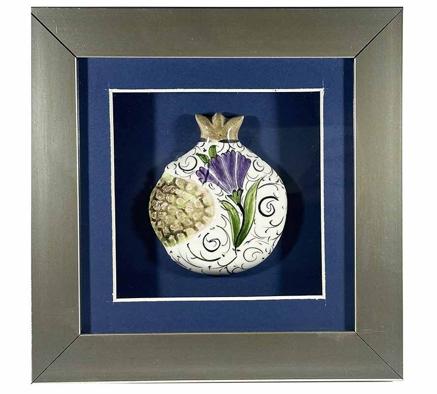 “Mor Karanfil”, İznik çini sanatının zarif çizgilerini bereketi temsil eden nar figürüyle bir araya getiren özel bir dekoratif plaket tasarımıdır. Mor karanfil motifi ve geleneksel siyah kıvrım desenleri, lacivert paspartu ve metalik çerçeve ile birleşerek modern ve klasik estetiği aynı üründe sunar. Kurumsal teşekkür hediyeleri ve özel günler için prestijli bir seçenektir.