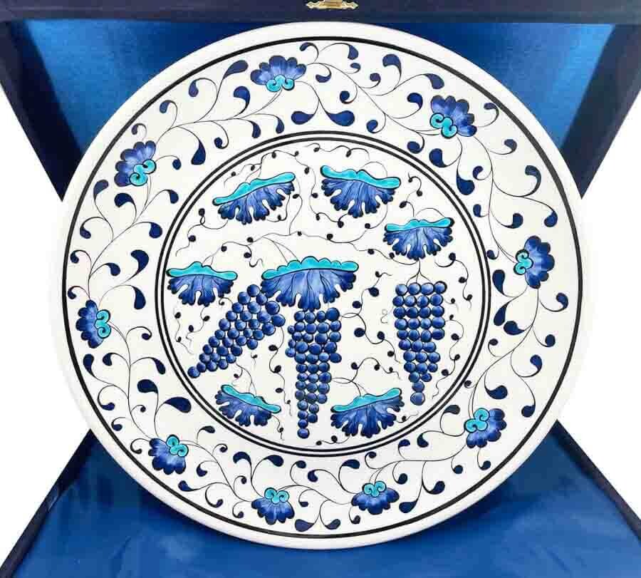 The grape cluster motif is one of the most popular symbols in Iznik ceramics, representing abundance, prosperity, wealth, and joy. Grapes, one of the world’s oldest and most significant fruits, are not only nutritious but also historically tied to wine production.