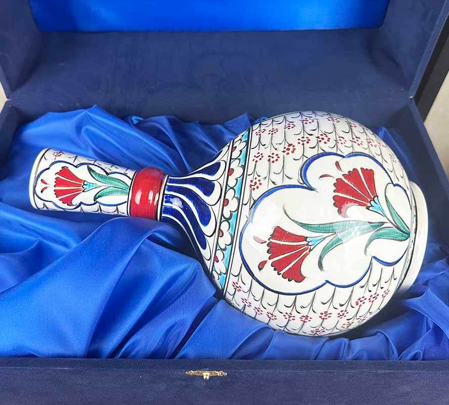 Gözyaşı formu sayesinde klasik vazo modellerinden ayrılan bu eser, salon, vitrin, ofis ve makam odalarında tek başına bile etkileyici bir odak noktası oluşturur. İznik sanatına ilgi duyanlar, evine anlamlı bir parça eklemek isteyenler ve prestijli bir hediye arayanlar için çok özel bir seçimdir.