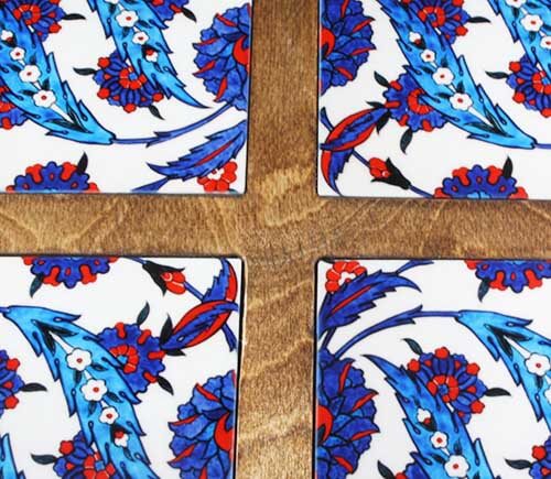 Plateau en bois élégant composé de 4 morceaux de carreaux de céramique de 10*10cm.