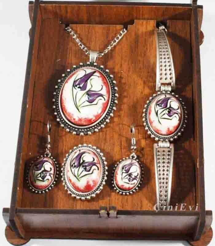 Purple Tulip Iznik Pottery Jewelry Set