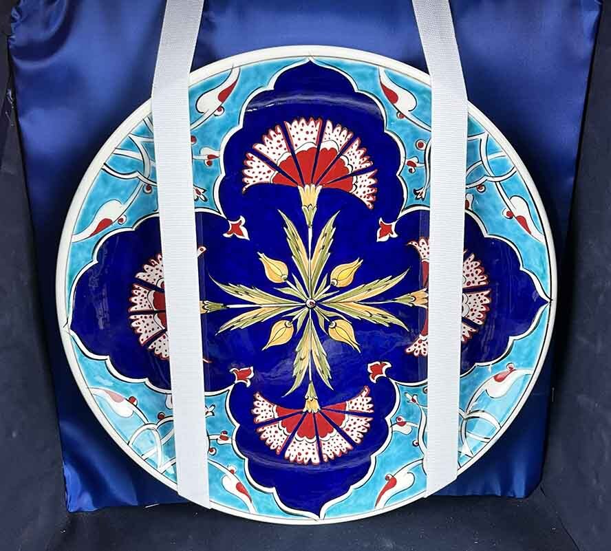 • Lacivert zemin üzerinde karanfil ağırlıklı klasik İznik kompozisyonuna sahiptir