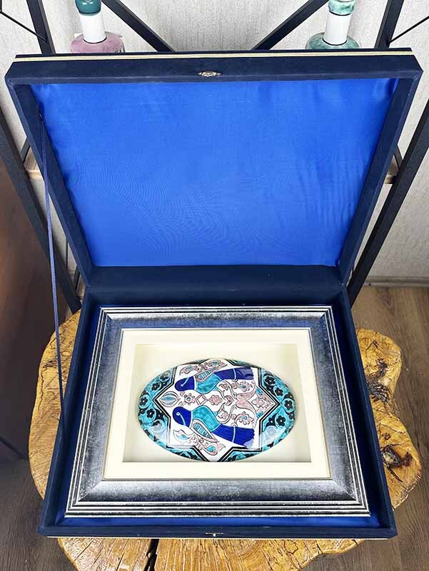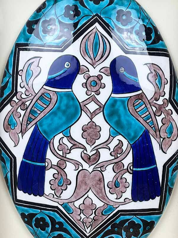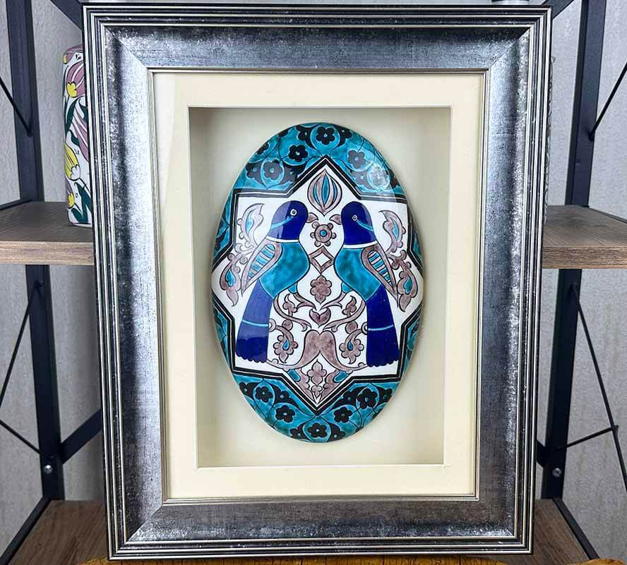 Geleneksel sır altı İznik çini tekniğiyle, usta zanaatkârlar tarafından el yapımı olarak üretilmiş; kurumsal sunuma uygun şekilde hazırlanmıştır.