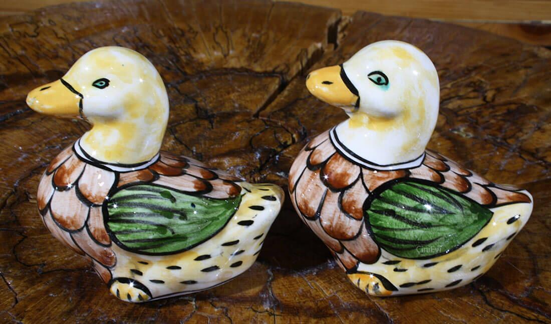 A set of 2 charming duck figurines, handmade Çini Evi special design.