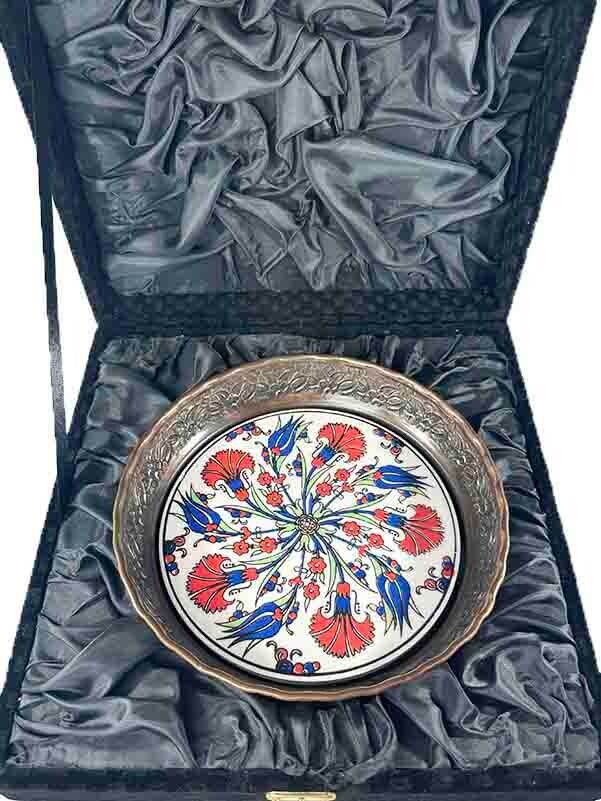 Ce sucrier de prestige, recouvert de cuivre doré et présenté dans un coffret en bois luxueux recouvert de velours, met en valeur deux des motifs floraux les plus emblématiques de l’art ottoman : la tulipe et l’œillet. Orné d’une céramique imprimée par transfert, il allie tradition, esthétique et symbolisme, faisant de lui un cadeau élégant et chargé de sens.