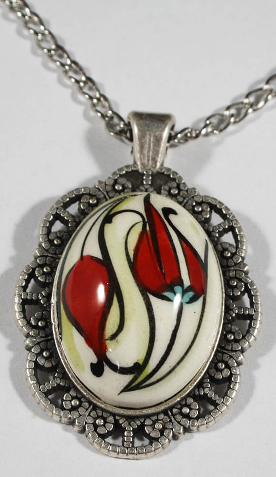 Teşekkür Ederim Hediyesi Lale Desenli İznik Çini Kolye Ucu,