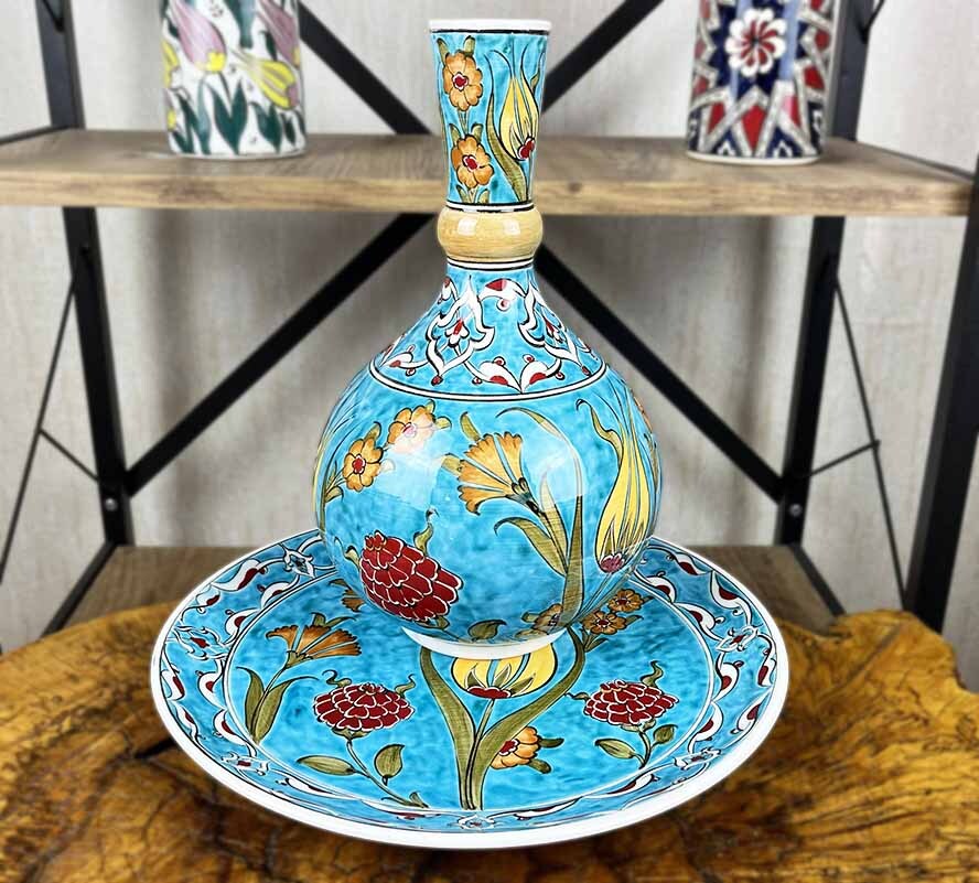 Turkuaz Zarafet – İznik Çini Vazo Tabak Seti