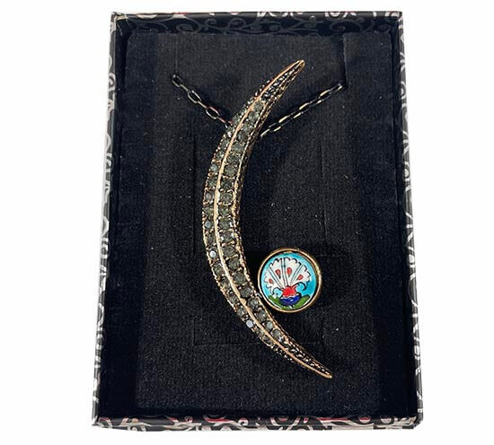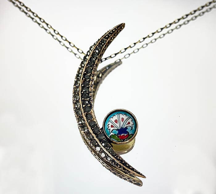 Turkuaz Zemin Karanfil Motifli Bronz Kolye,