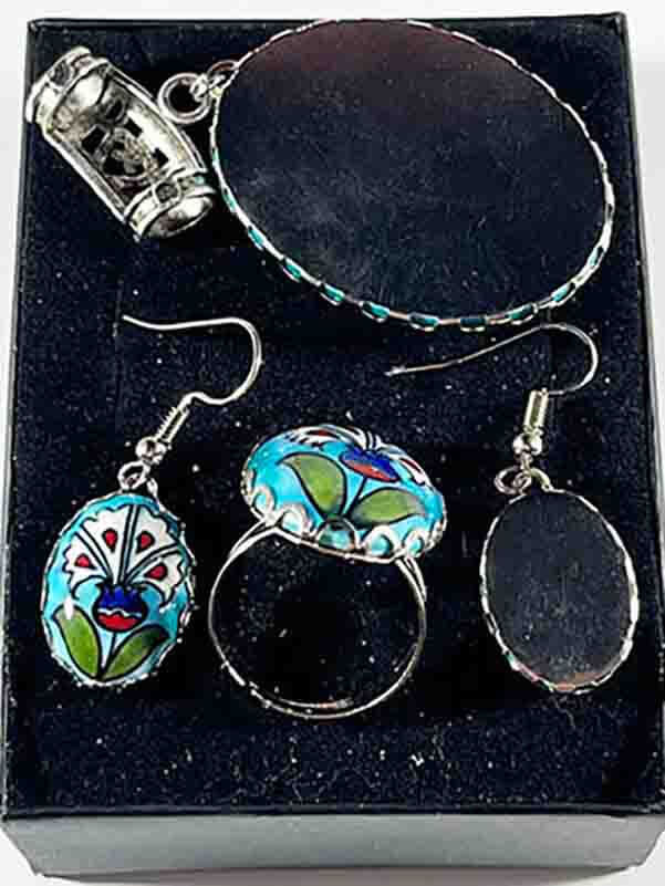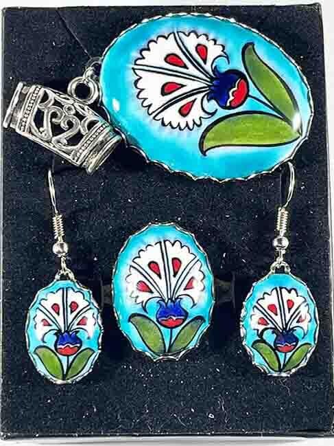 Turquoise Background White Carnation VIP Iznik Tile Jewelry