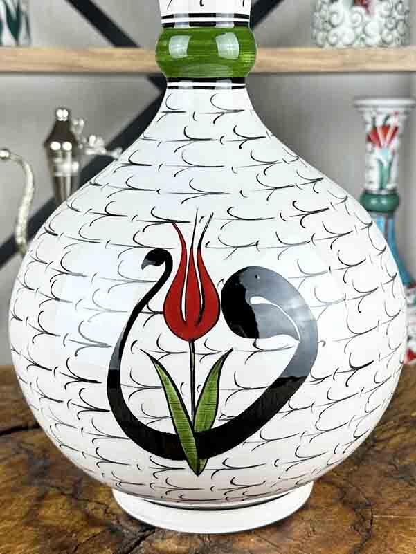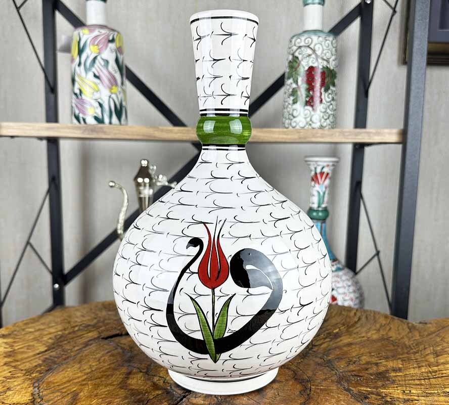 Aynı zamanda ev veya ofis dekorasyonunda, Türk çini sanatının asaleti ve estetik gücünü yansıtan etkileyici bir obje olarak da değerlendirilebilir. Her bakışta İznik’in köklü tarihine, formun zarafetine ve el emeğinin kıymetine tanıklık ettirir.