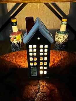 Combining the beauty of art and light, this exceptional Iznik ceramic candle holder features a house-shaped design that is both functional and decorative.