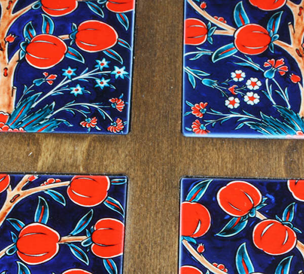 In Iznik ceramics, the Tree of Life is often depicted with a large trunk and sprawling branches filled with flowers, fruits, and leaves. While it can be rendered in various colors, the most common hues are blue, white, and red.