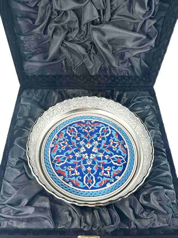 Ce sucrier en métal argenté, orné de motifs végétaux inspirés des céramiques traditionnelles d’Iznik, est un choix raffiné pour accueillir un invité étranger avec distinction. Présenté dans un élégant coffret en bois recouvert de velours, il reflète l’héritage artistique turc tout en offrant une touche de nature, d’harmonie et de symbolisme universel.