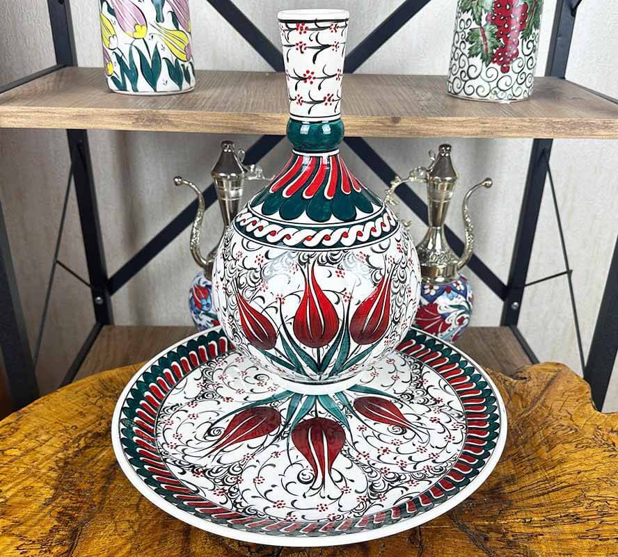 Yabancı Müşteriye Vip Hediye İznik Çini Vazo Tabak Seti,