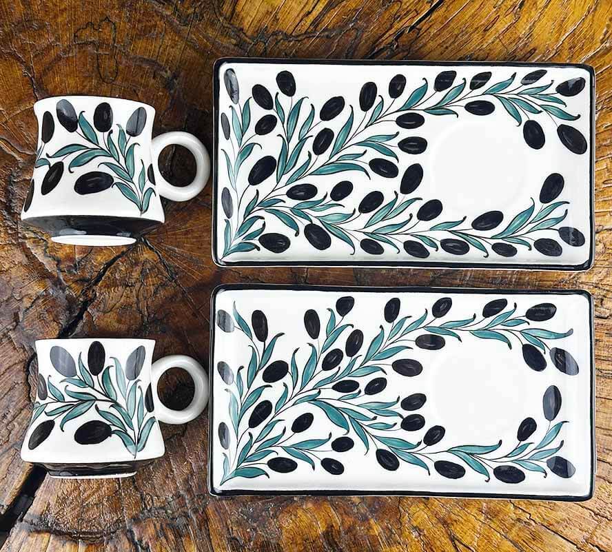 Bu sette kullanılan zeytin dalı kompozisyonu, çizgisel sadelik ve yalın renklerle modernize edilerek hem estetik hem de anlam açısından zengin bir bütünlük oluşturur.